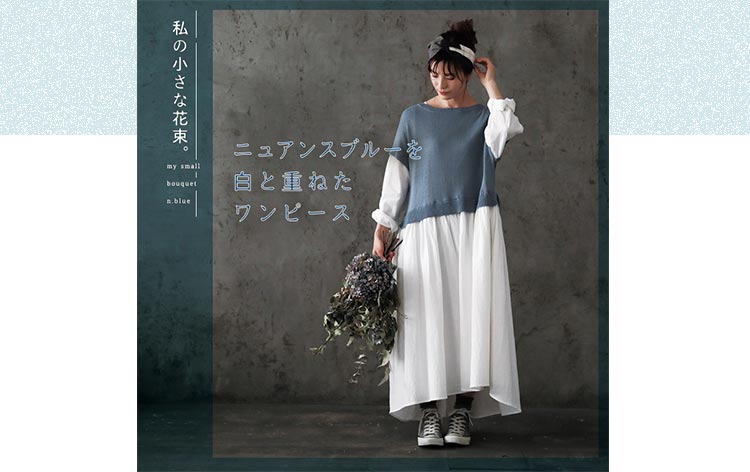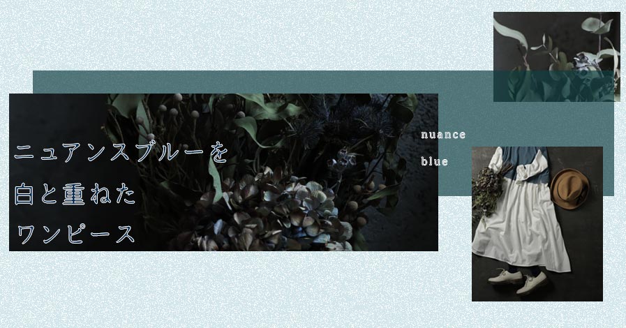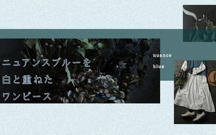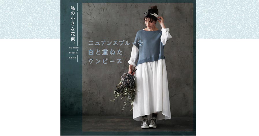 ニュアンスブルーを白と重ねたワンピース