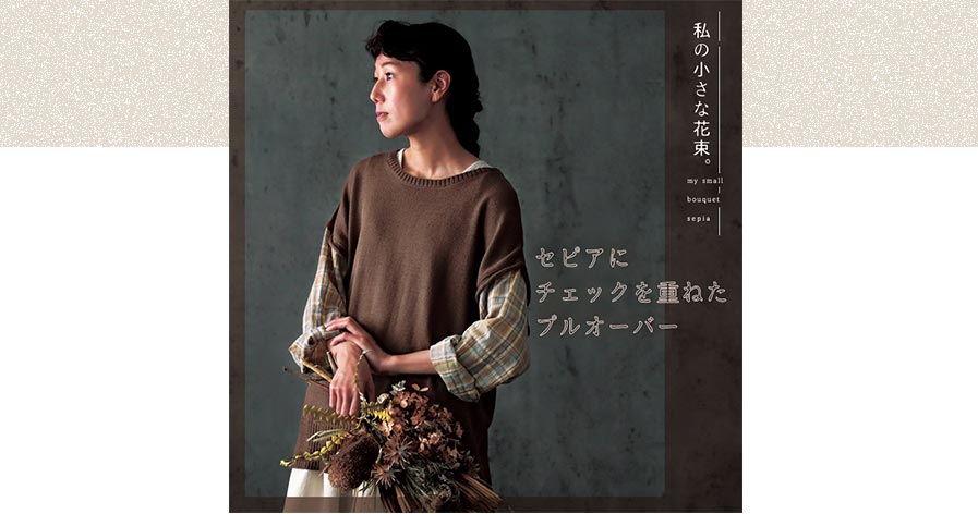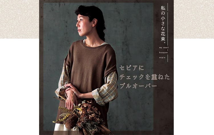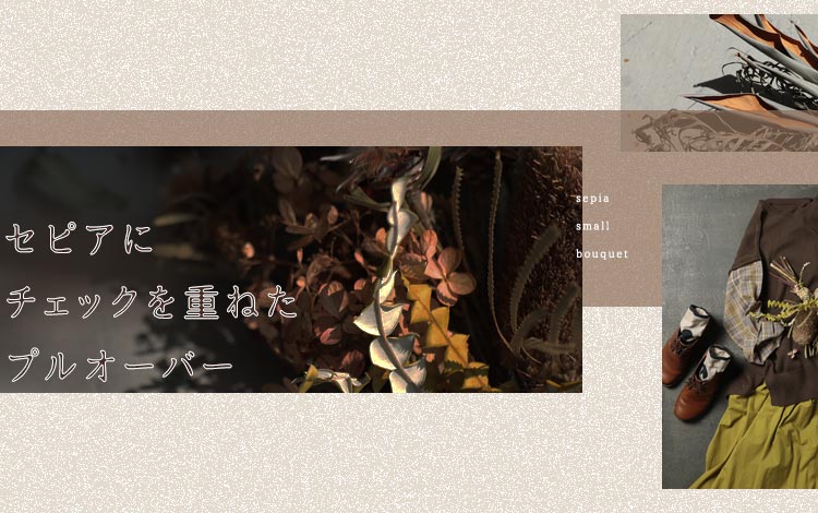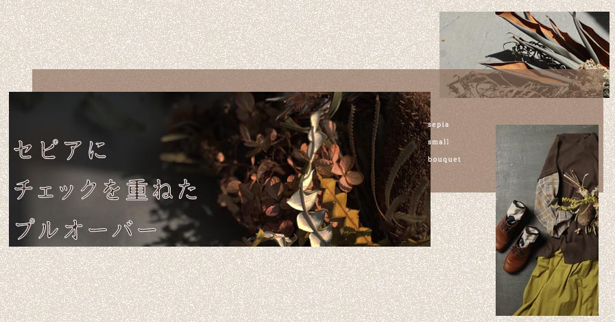 セピアにチェックを重ねたプルオーバー